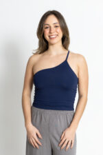 A blusa que une conforto, elegância e versatilidade em cada detalhe. Com modelagem ombro só, alça fina e regulador para ajuste perfeito, a peça é toda forrada, garantindo segurança e zero transparência. Básica na medida certa, ela transita com facilidade entre looks casuais e produções mais sofisticadas.