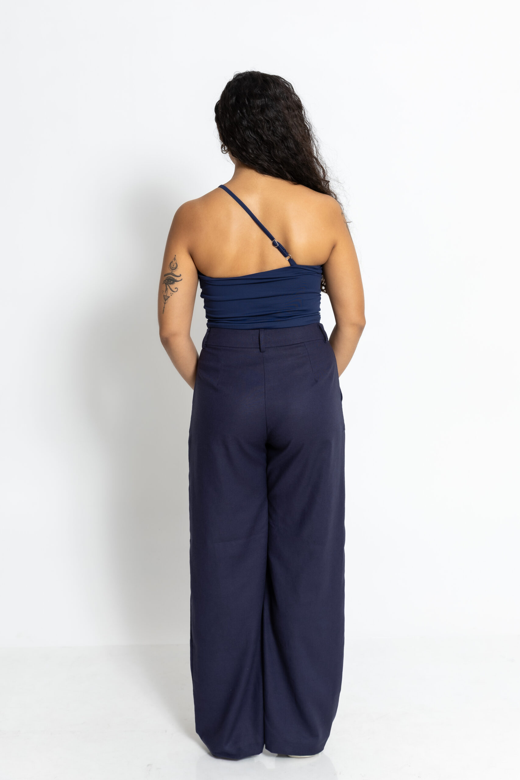 Tecido leve – uma mistura de 70% viscose e 30% linho com elastano – ideal para quem busca elegância sem abrir mão do conforto. O acabamento é limpo, minimalista, e valoriza o corpo com estrutura e leveza ao mesmo tempo.
