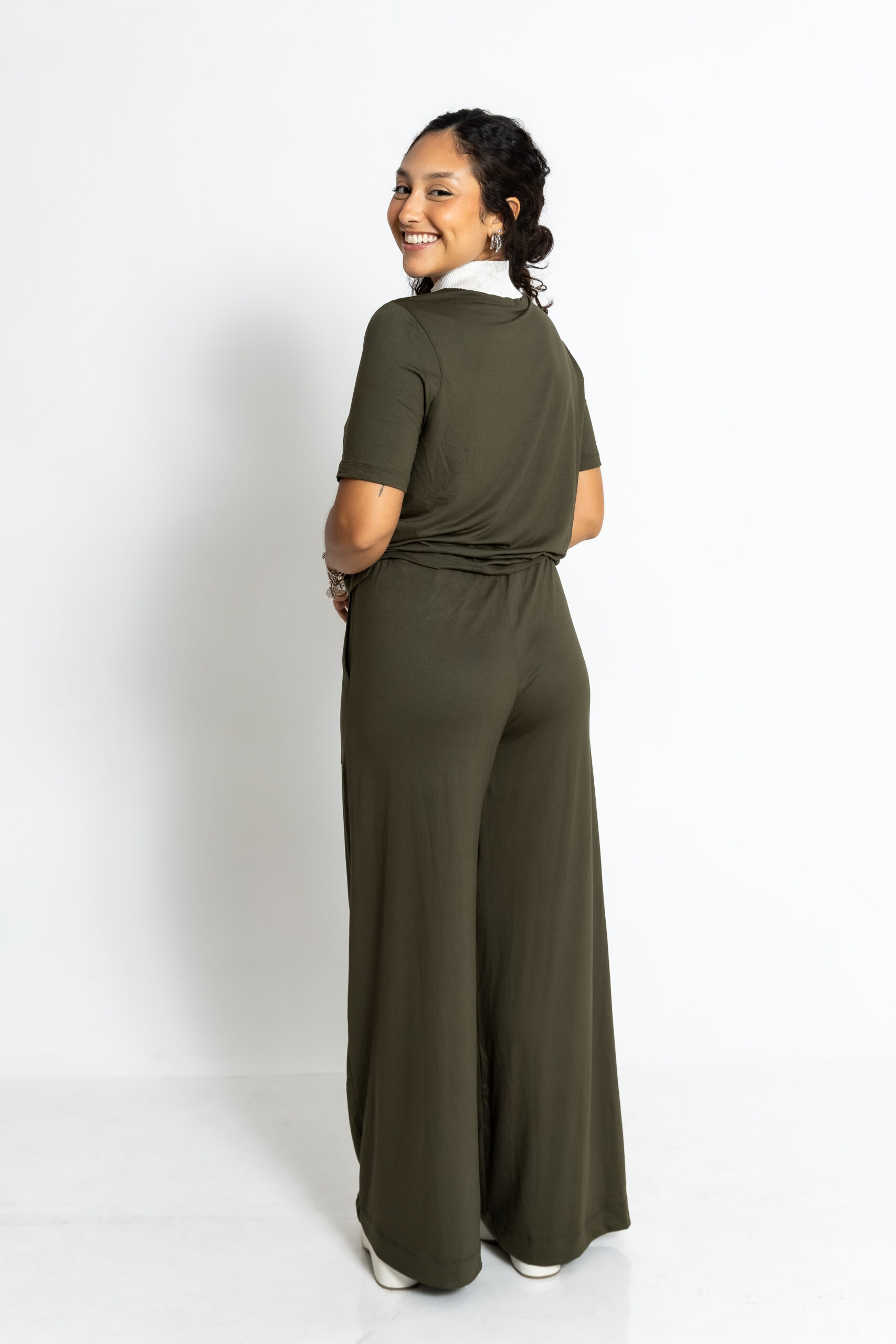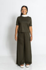 A calça pantalona Roma combina o toque macio do tricô no cós com o caimento fluido da modelagem. Os bolsos laterais trazem praticidade e o visual sofisticado transforma qualquer produção em puro estilo.