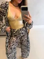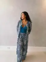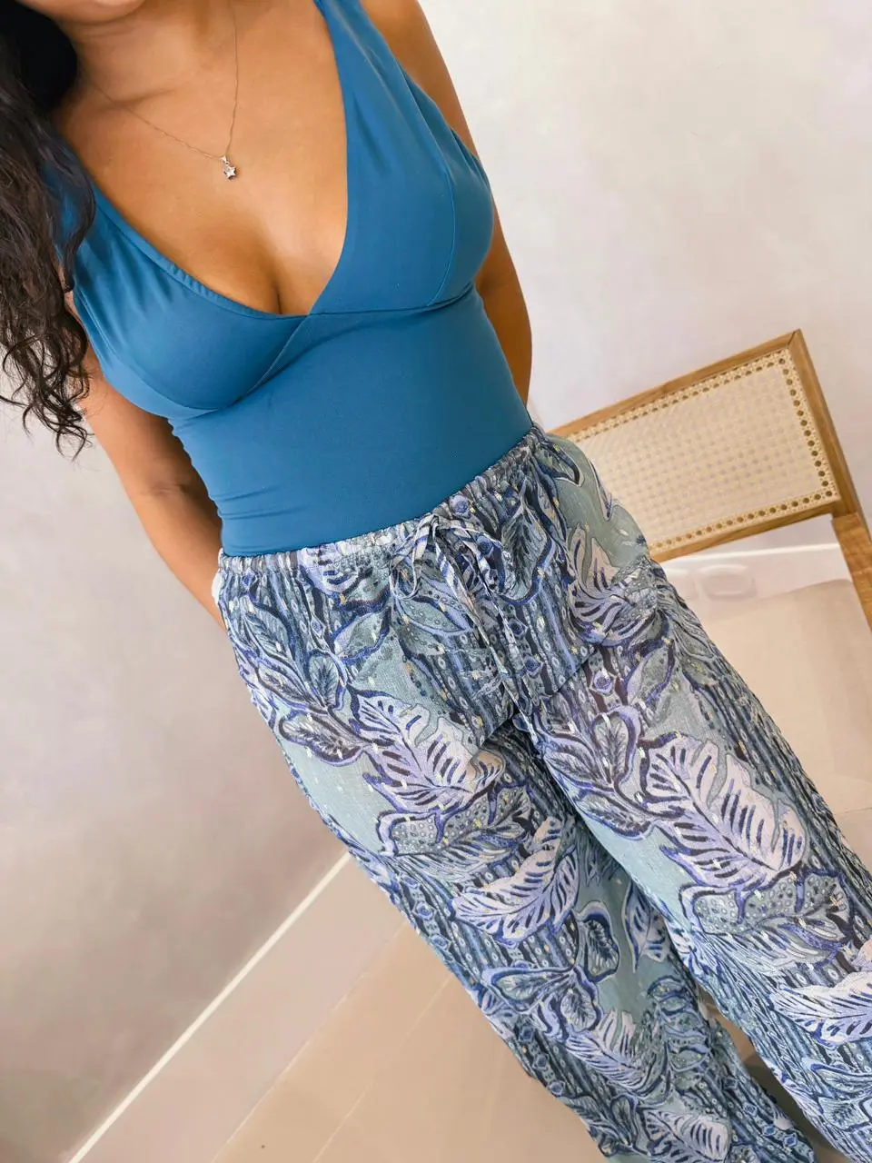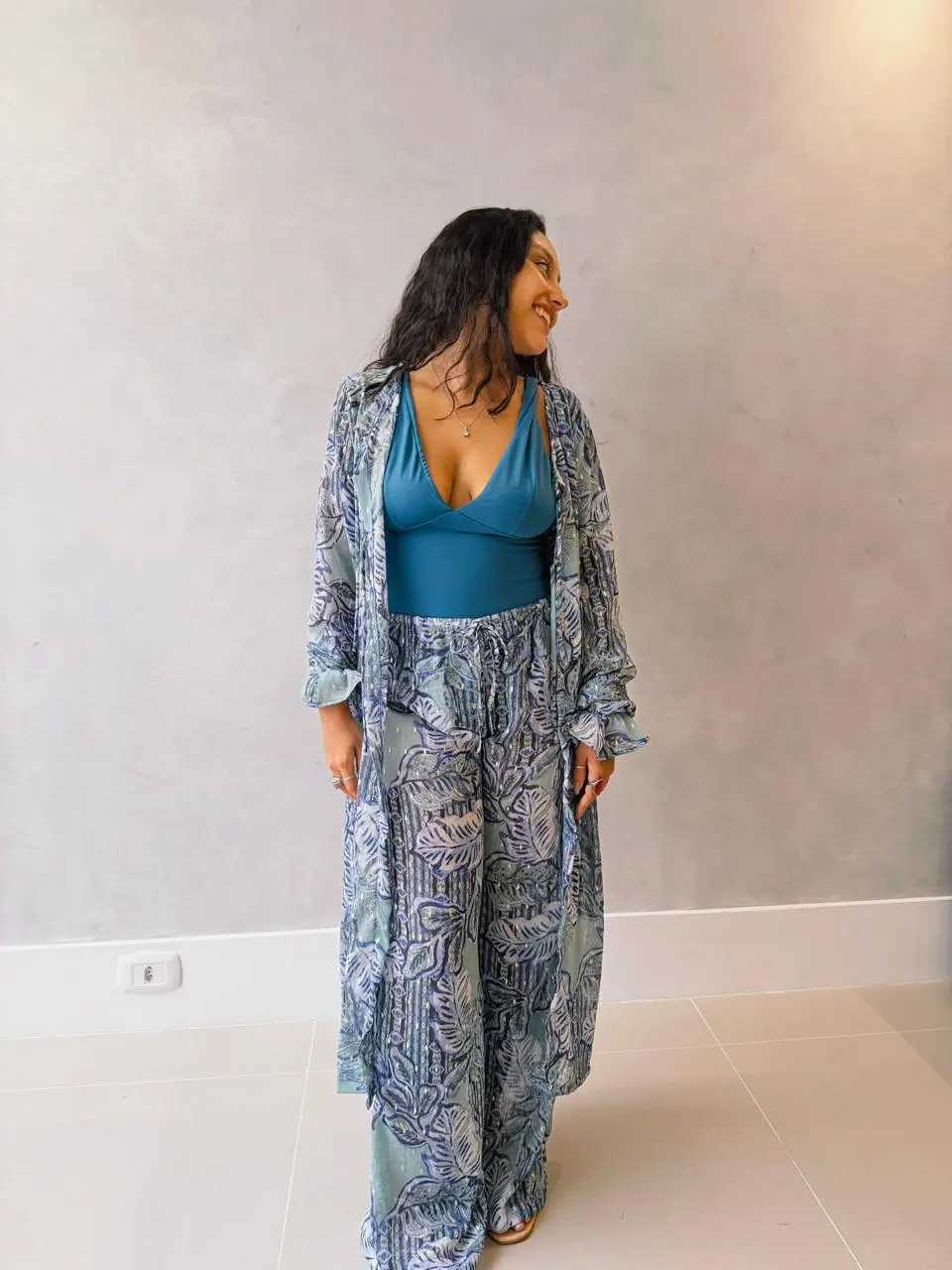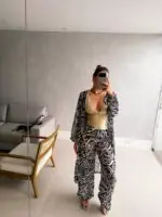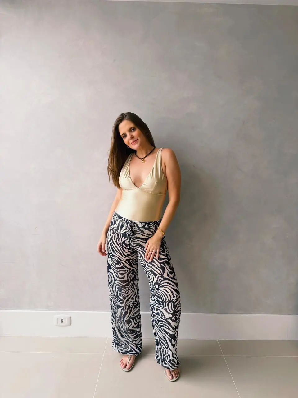 O cós confortável com elástico na cintura, com uma estampa que personalidade ao look, mantendo a sofisticação. Uma peça prática, estilosa e ideal tanto para produções mais elaboradas quanto para momentos descontraídos.