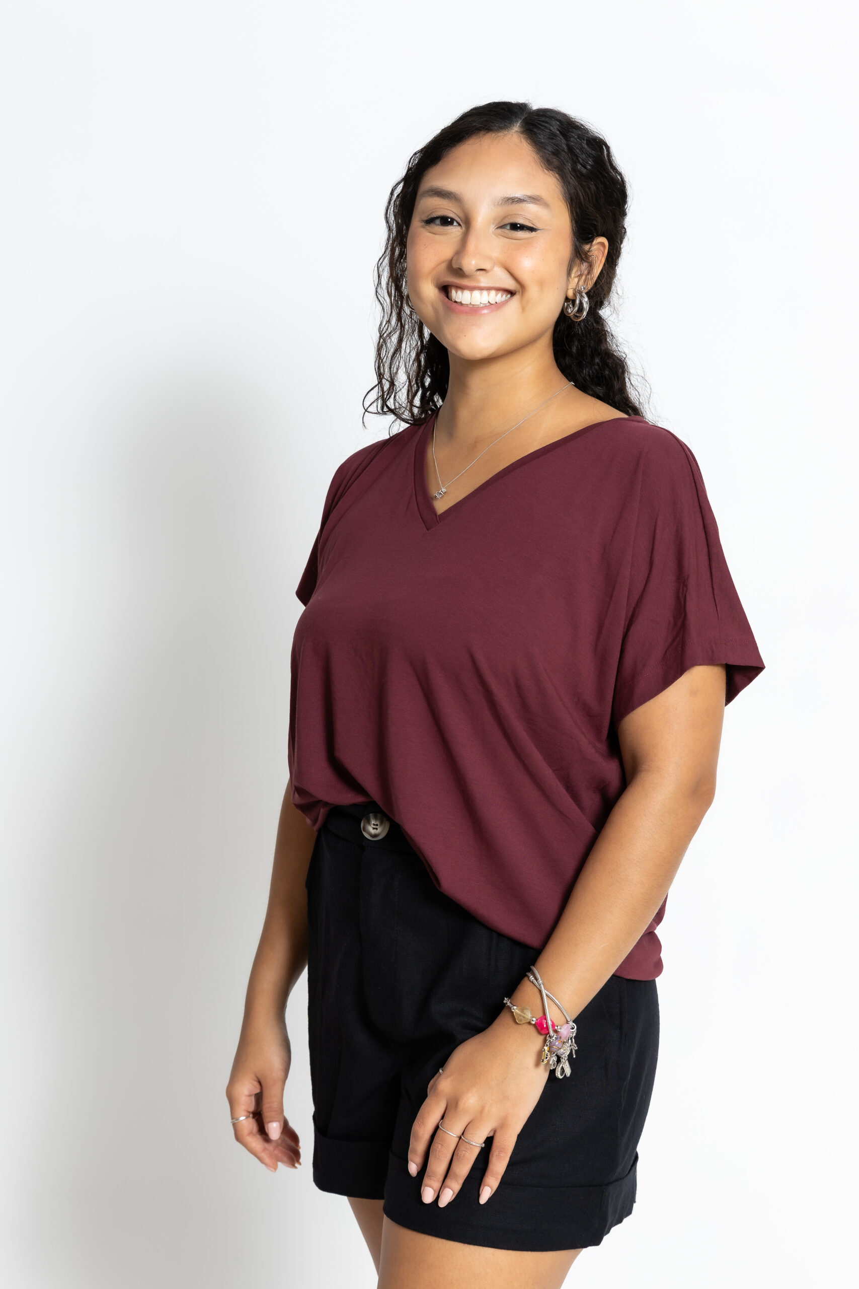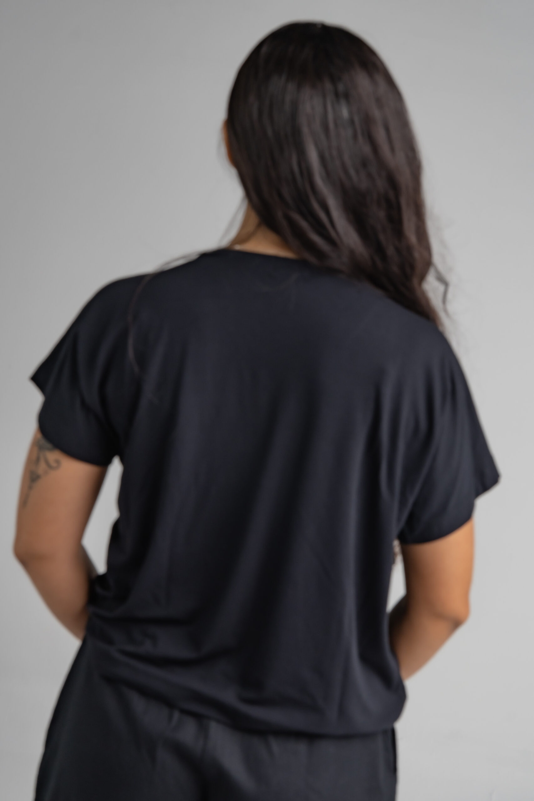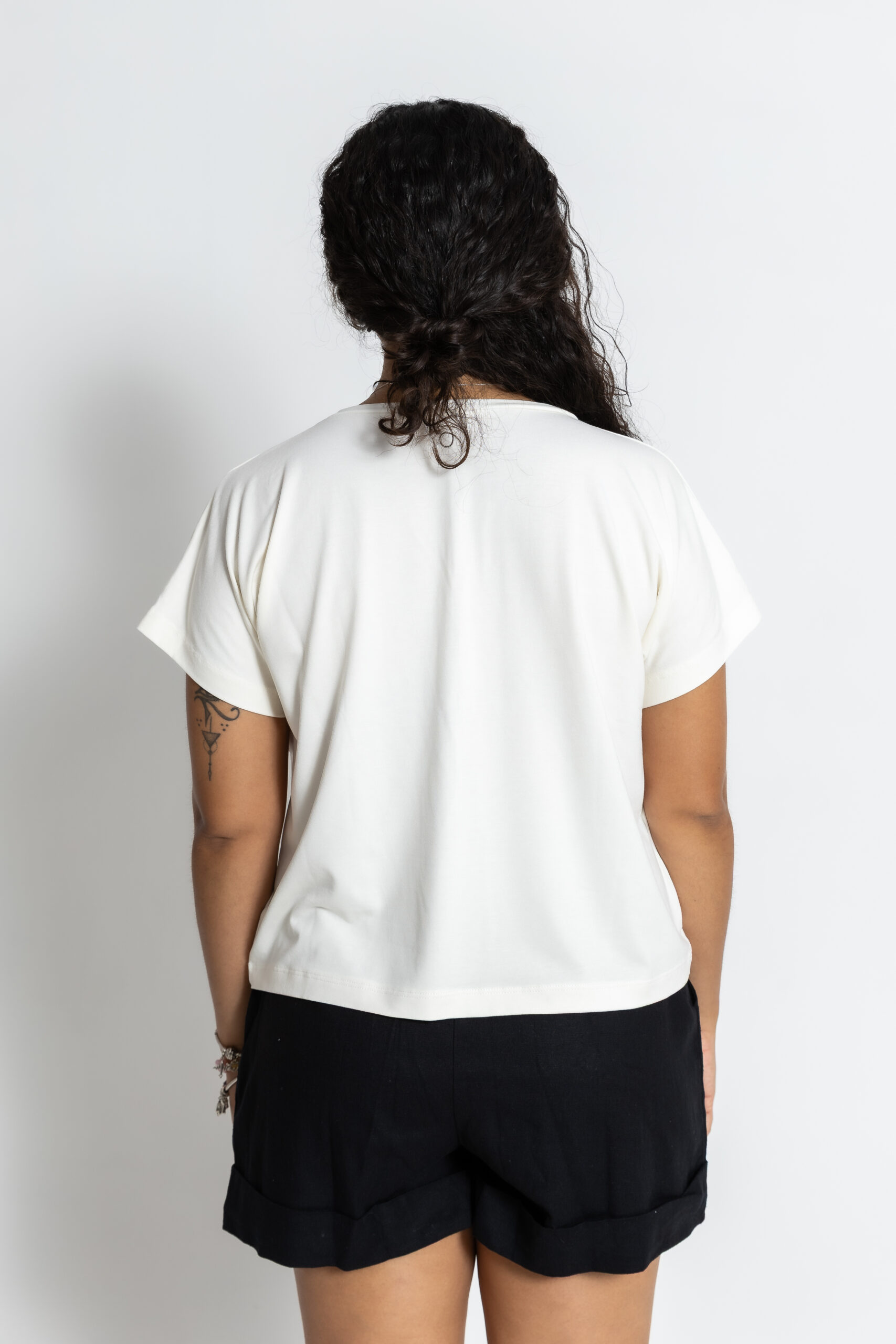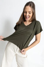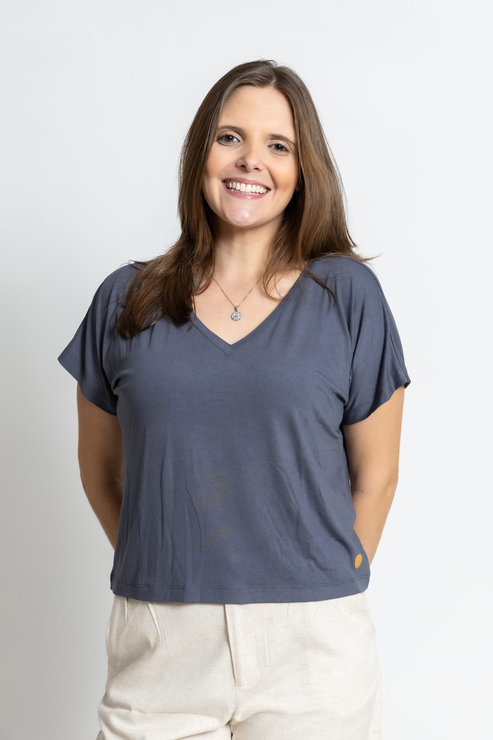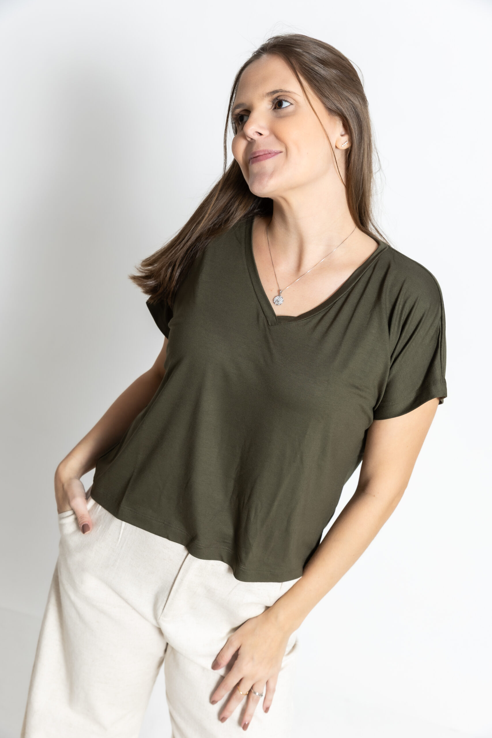 Além disso, o produto possui decote em “V” – um tipo de decote que fica em bem em diversos tipos de corpos e, que valoriza tanto o busto como o corpo.