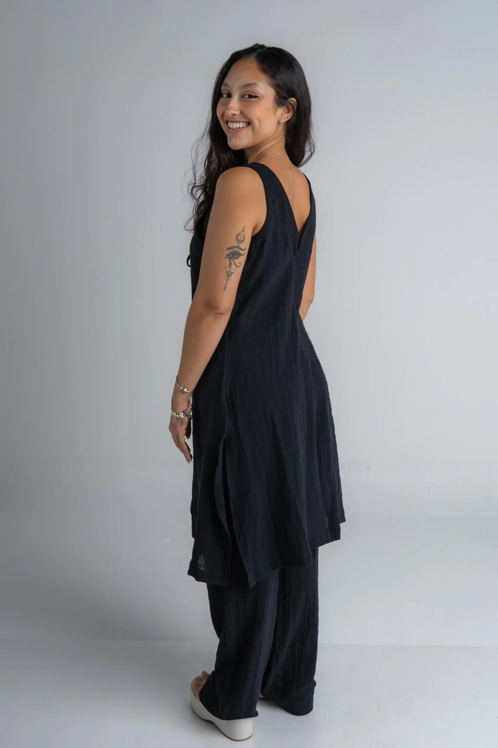 Leve, fluida e cheia de personalidade. A Túnica Gioh possui amarração frontal que permite ajustar o caimento ao corpo, trazendo versatilidade e charme ao visual. A abertura na lateral adiciona movimento e leveza à peça, garantindo conforto e um toque moderno. Ideal para compor looks descomplicados, frescos e elegantes perfeita para usar sozinha, como sobreposição ou como saída de praia chic.